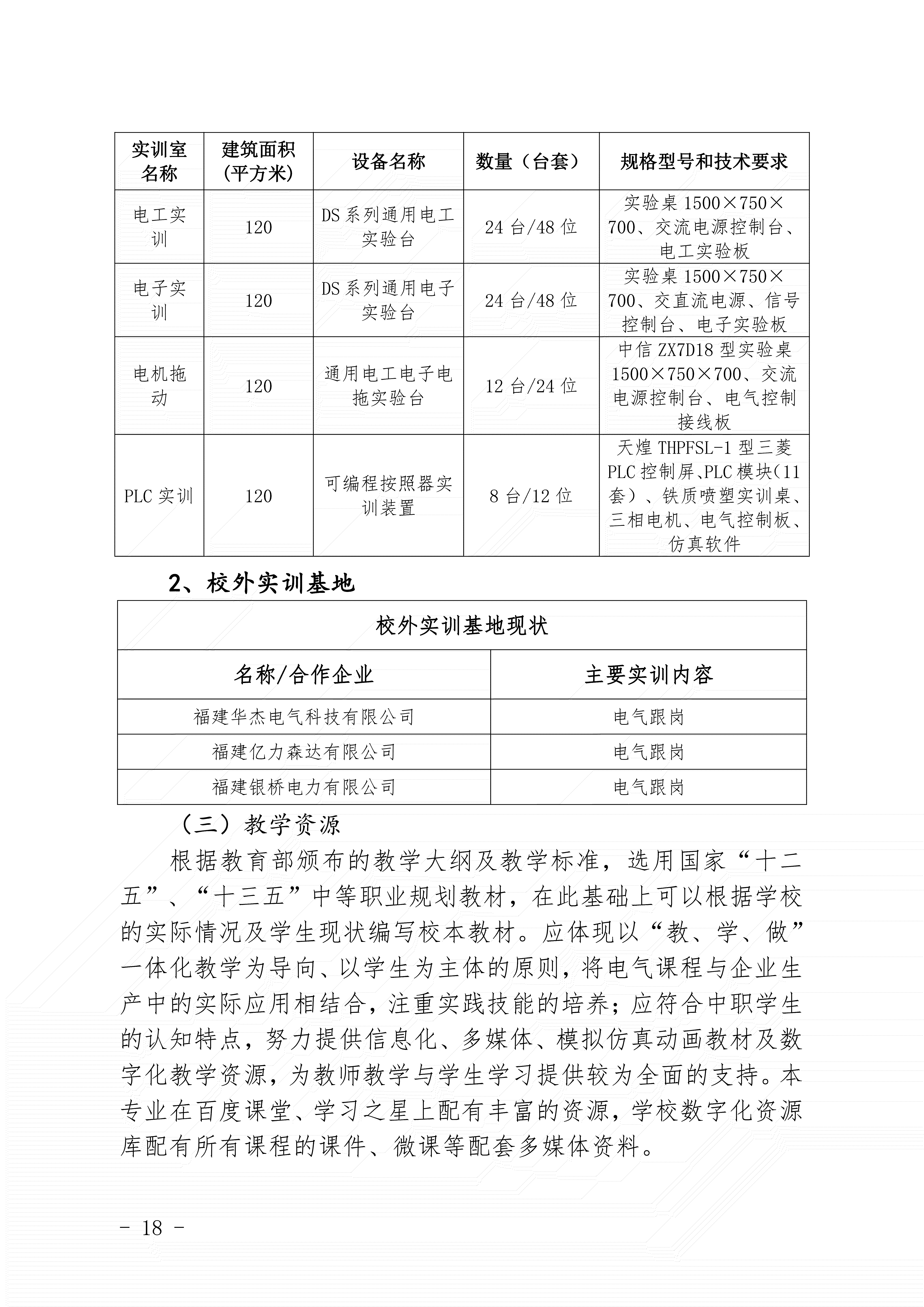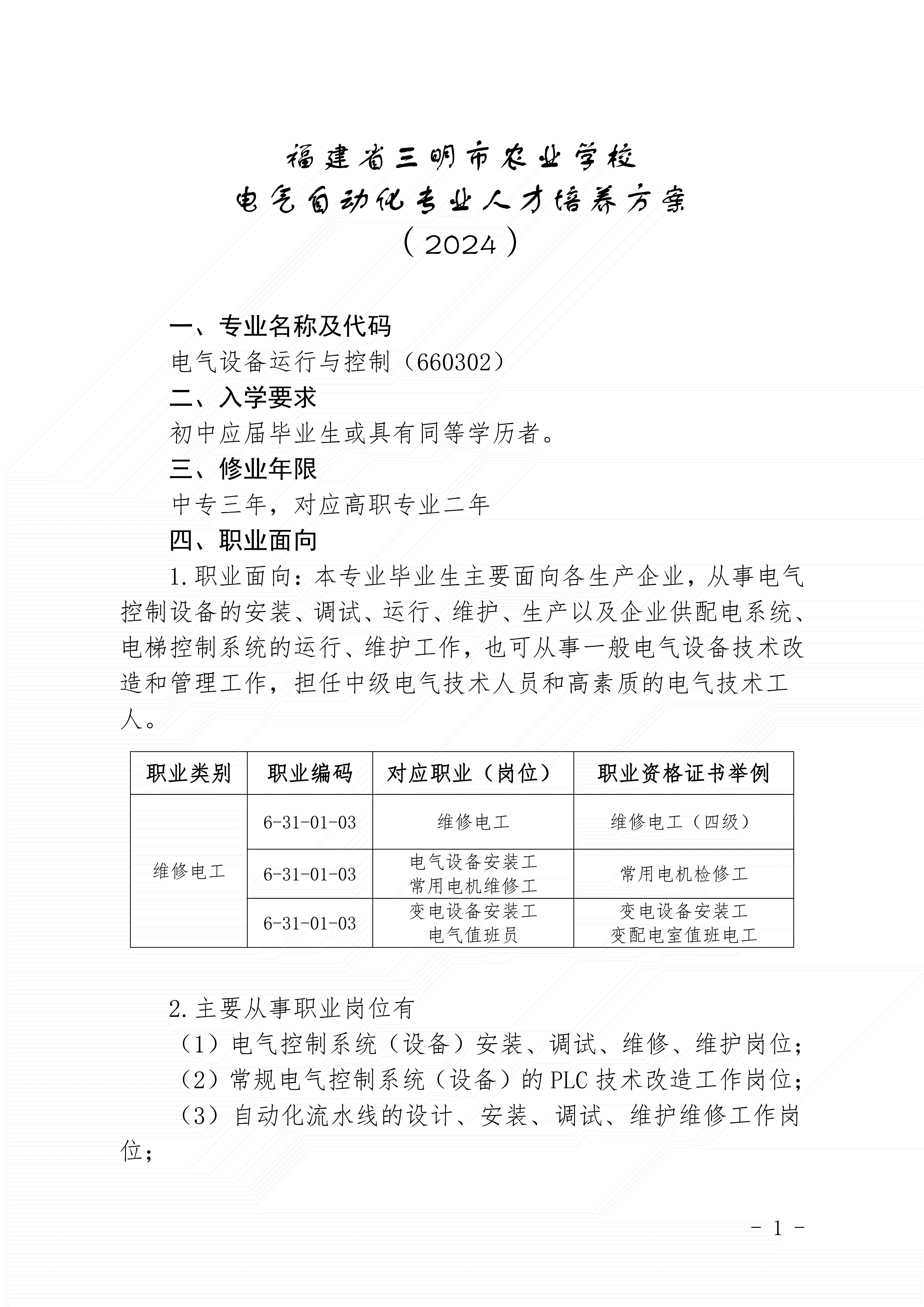 三明市农业学校电气专业人才培养方案(2024)